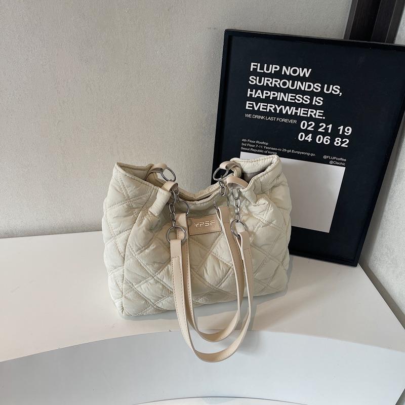 New Large-capacity Cotton Clothing Bag Fashionable Solid Color Simple Diamond Embroidery Thread Shoulder Bag Casual Commuter Hand
