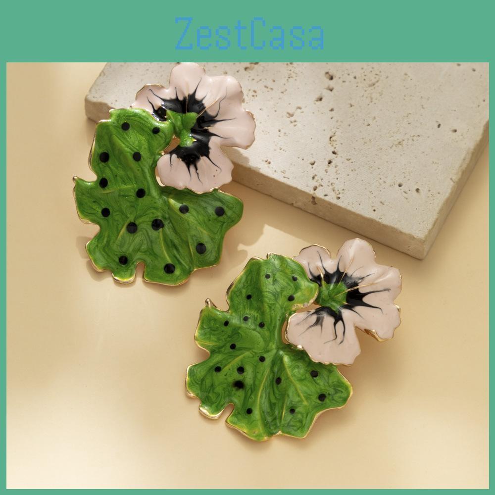European Style Chic Enamel Drop Oil Floral And Leaf Earrings Women For