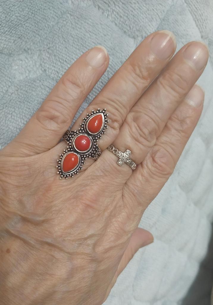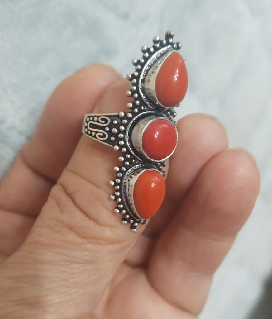 Italian Red Coral Gemstone 925 Sterling Silver Gift Jewelry Ring Size 7