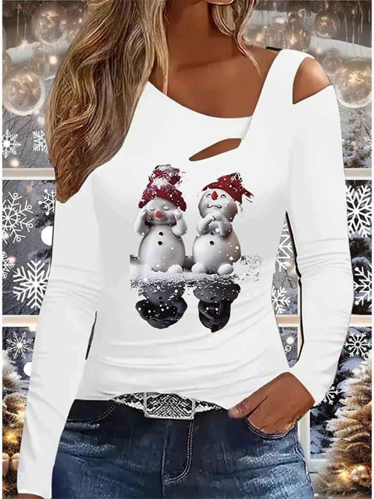 Autumn & Winter Women's New Casual Long Sleeve Top Christmas Pattern Ideal Halloween Christmas Gift T Shirt
