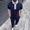 Summer Men's POLO Shirt Zipper Contrasting Color Lapel Short-sleeved Top Casual Solid Color Trousers Set