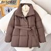 BITCED Women's Winter Thickened Collared Waist-cinched Cotton Coat Slim-fitting Solid-colour Cotton Jacket