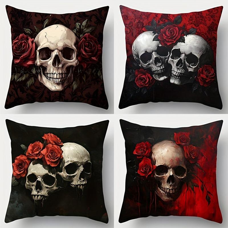 Edgy Skull & Rose PillowcasesLiving Room Sofa Cushion Cover, Soft and Comfortable, Bedroom Room Decoration
