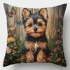Yorkshire Terrier In Floral Garden PillowcasesLiving Room Sofa Cushion Cover, Soft and Comfortable, Bedroom Room Decoration