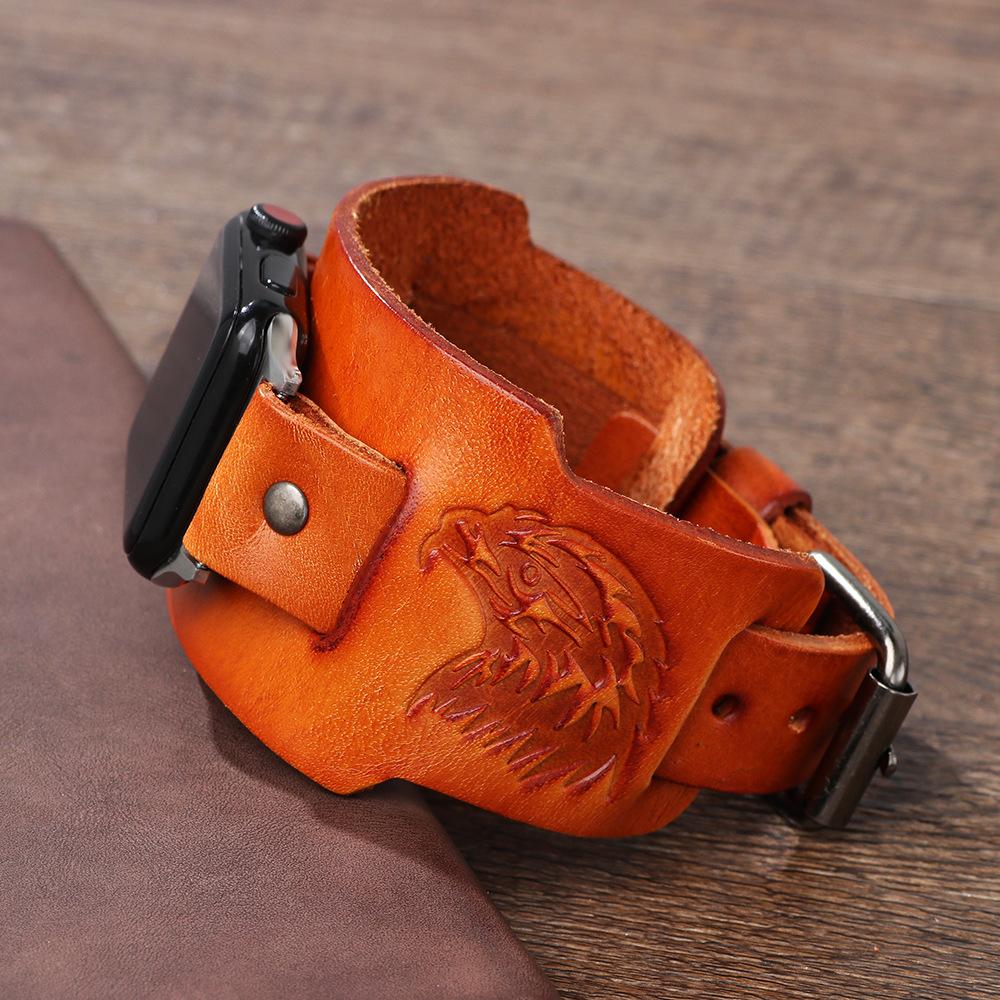Punk Cuff Cow Leather Bracelet for Apple Watch Strap 44mm 41mm 45mm 49mm 40mm 42mm Watch Band 4 5 6 7 8 9 10 SE Ultra Watchband