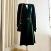 Autumn Foreign Trade Order Wedge Collar Draping Effect Long Sleeve Mid-Length Dress