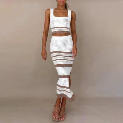 Foreign Trade Original Order Hollow Out Wrap-around Vest + Slim Fit Sheath Skirt Western Style Pure Desire Knit Two Piece