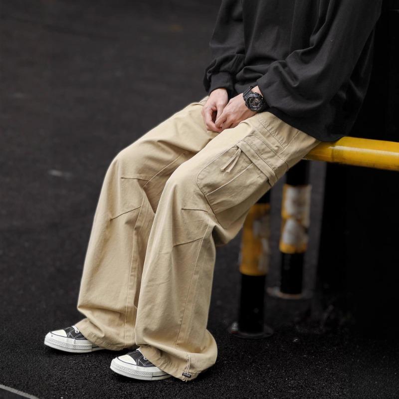 Men's Spring and Summer Pleated Design Straight Overalls Men's Retro Versatile Loose Drawstring Wide-leg Casual Pants