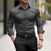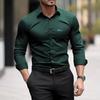 Spring and Autumn Men's Long Sleeve Collar Solid Color Shirt Men's Casual Thin Fashion Button Open Shirt Micro Elastic