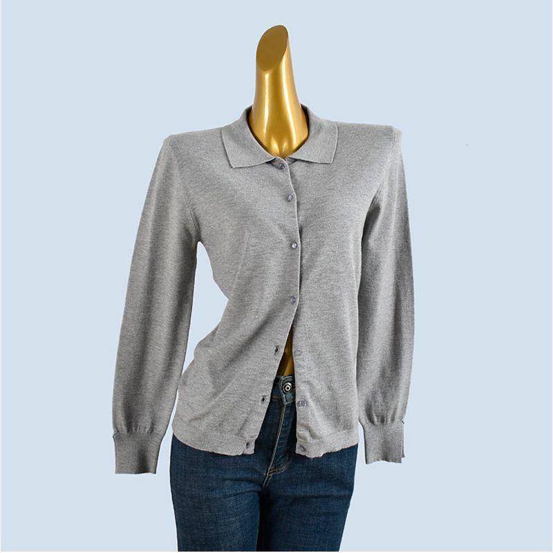 Foreign Trade Order Polo Collar Knit Cardigan Spring and Autumn Loose Women's Long Sleeve Slim Fit Slimming Top Casual All-matching Outer Wear