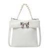 - **Pearl & Bow Detail Bag**: Features a sleek structured silhouette with glossy PU finish, a decorative metal bow accent, and a pearl handle, exuding elegant and sweet charm. Multiple color options (Black, Off-White, Silver, Pink) cater to diverse style preferences.