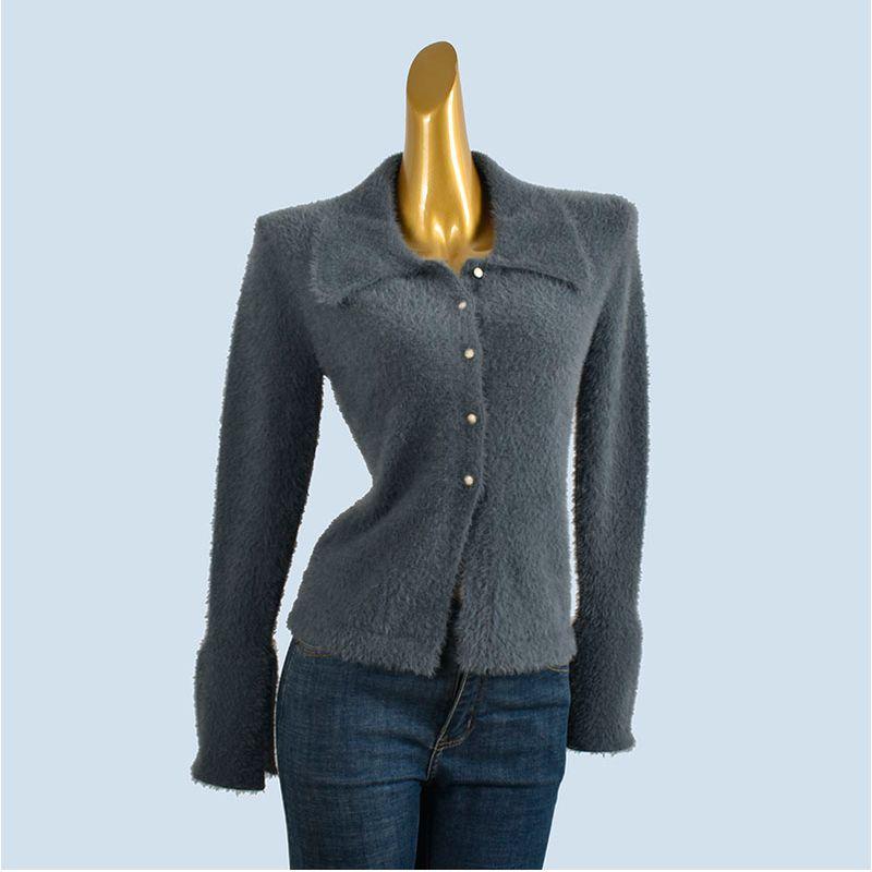 Fancy American Lapel Imitation Mink Knitting Cardigan Female Fall and Winter New Sweater Coat Long Sleeve Split Elegant