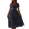 Elevate your style with this chic women's dress featuring a high-rise waist design and A-line silhouette that beautifully flatters your figure. The gentle floral pattern exudes a commuter temperament, while the square neck puff sleeve design adds an elegant touch to the overall look.