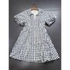 Foreign Trade Order Entr0 Retro Preppy V-neck Puff Sleeve A Word Plaid Dress