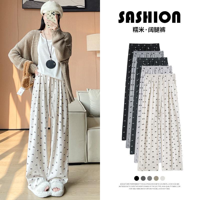 Bow Glutinous Rice Pants Women's Autumn and Winter Velvet High Waist Drape Loose Lazy Casual Small Wide-leg Pants