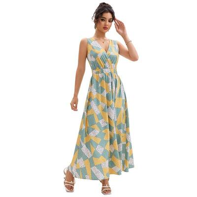 Women's Summer Sleeveless V-neck High Waist Printed Long Plus Size Dress Clothes Sale