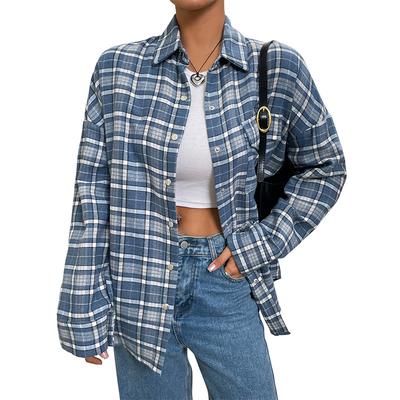 Women's Plaid Blouse Long Sleeve Check Shirt Basic Women's Korean Fashion Clothes