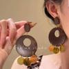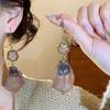 Silver Needle Leopard Heart Bow Geometric Dangle Earrings - Trendy Korean Style for Women