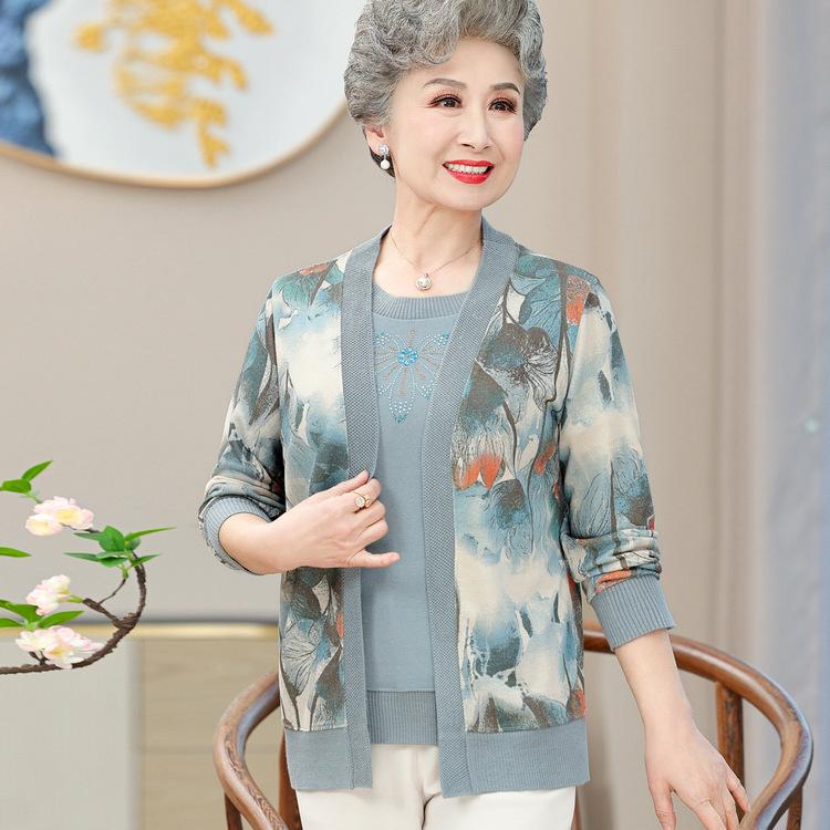 Women's Clothing, Grandma Early Autumn New Knitted Sweater Two-piece Set 50-year-old 60-year-old Mother's Clothing, Shawl Sweater Set