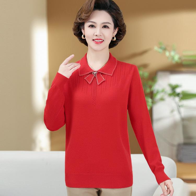 Middle-aged and Elderly Women's Spring Clothes Long-sleeved T-shirt Middle-aged Mother Loose Base Shirt Top Ladies Age-reducing Clothes Casual