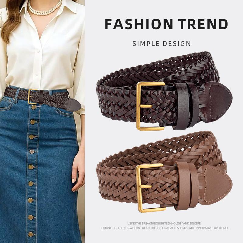 French Retro Hand-woven Cowhide Belt for Women's Classic High-end Feeling with Jeans Skirt Exquisite Women's Belt