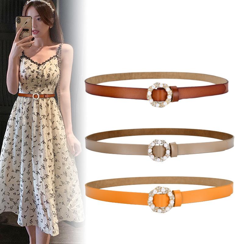Round Pearl Belt Women's Decoration Versatile Women's Cowhide Leather Genuine Leather Belt Dress Jacket Women's Trouser Belt