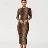 New Fall and Winter New Fashion Sexy Leopard Print Print Mid Length Long Length Silm Long Sleeves Dress Dress Dress