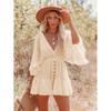 Summer New Sexy Sexy Front and Rear Depth V Neck Waist-Controlled White Lace Patchwork Batwing Sleeve Dress Female Dress
