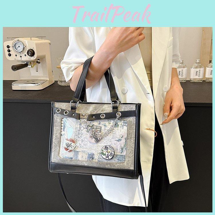 This large-capacity tote bag features a geometric rectangular shape made from durable PU material, measuring 29*23*10cm high. It supports daily use with a spacious interior, including a zippered compartment for organization, and is designed with contrasting stitched and color-blocked accents for a stylish look. Equipped with three shoulder straps, it offers convenient carrying for school, shopping, or casual outings. Easy to maintain, wipe clean with a damp cloth to keep it looking fresh.
