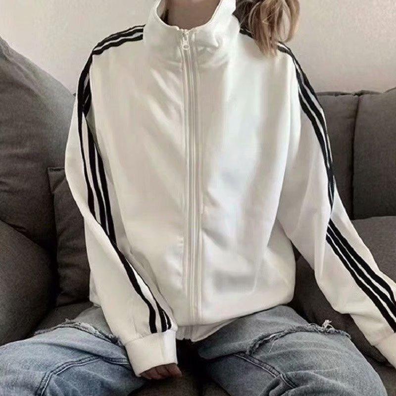 2024 Spring/Summer Korean Style Men's & Women's Black Three Stripes Jacket - Trendy, Loose Fit, Student Baseball Uniform
