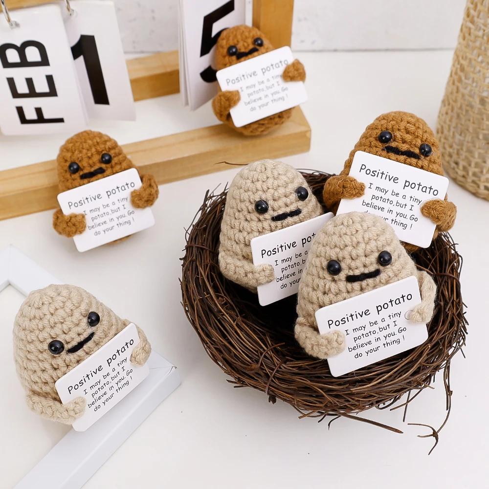 New Positive Energy Potatoes Hug Pocket Doll with Card Handmade Plush Wool Knitting Dolls Christmas Party Gifts Room Home Decor