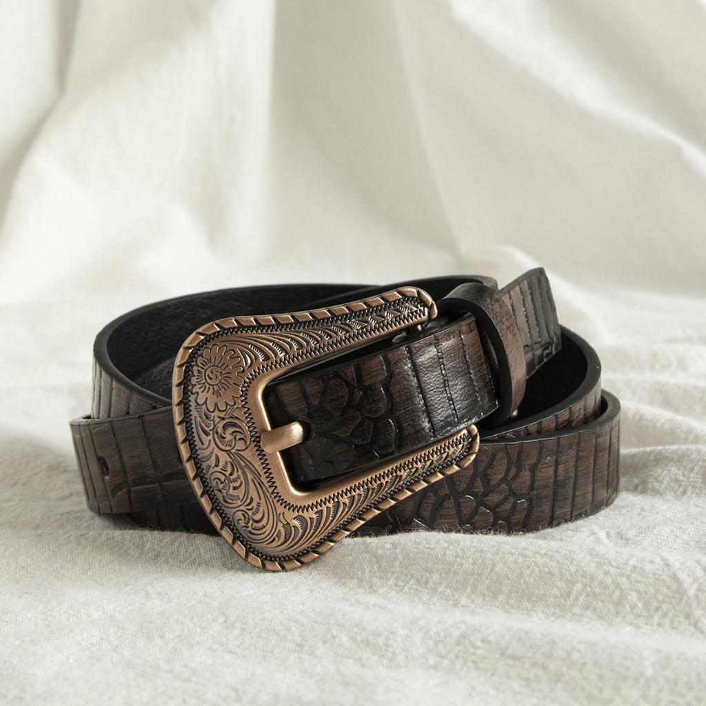 A Lady's Vintage, Aged, Embossed and Carved Western Style High-end, Fashionable and Elegant Fine Belt and Tang Grass Belt