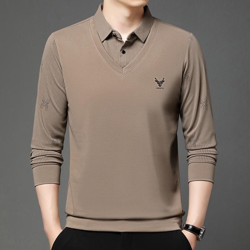 2 : Striped Fake Two-Piece Soft Lapel T-Shirt Men's Clothing