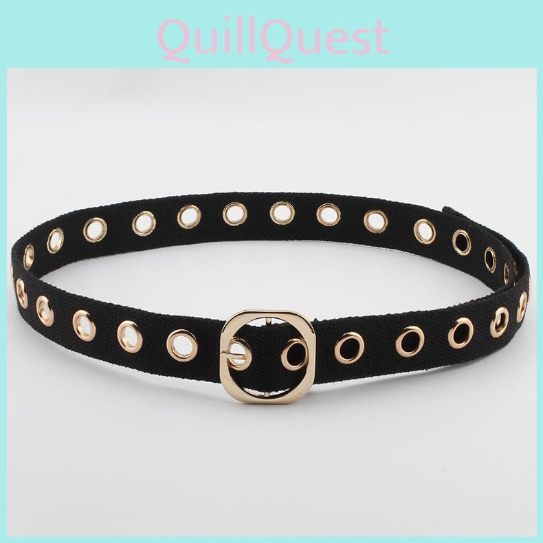 Solid Color Simple Porous Design Women Casual Canvas Belt With Square Buckle