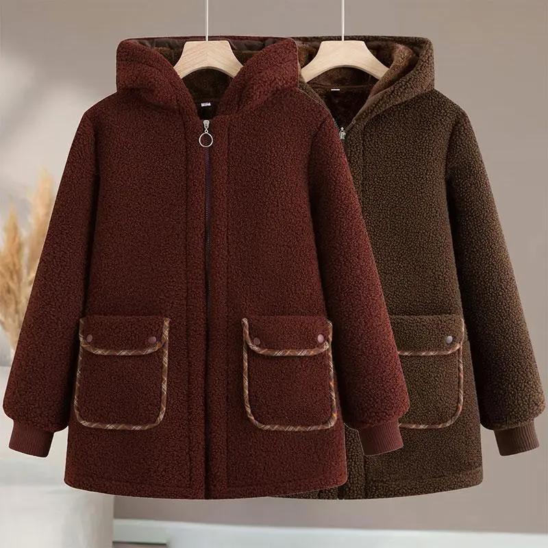 Mother's Autumn and Winter Clothes Lamb Fleece Padded Jacket Women's Women's Plus Velvet Thick Granular Fleece Padded Jacket
