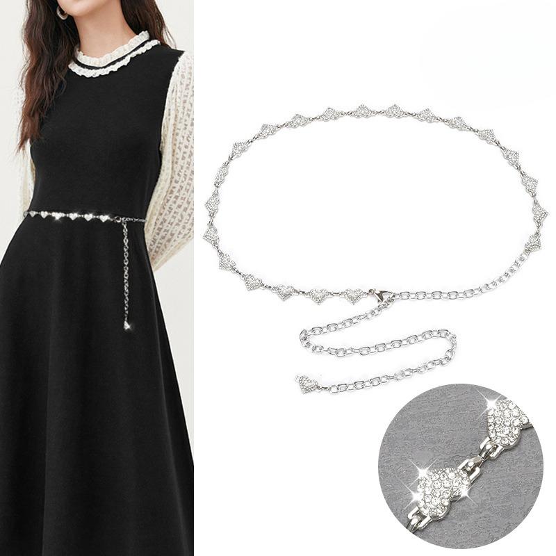 Decorative Waist Chain for Women's Personalized Rhinestone Pearl Heart-shaped Inlaid Thin Metal Belt Dress Waist-hugging Accessories Chain