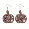1 Pair Halloween Autumn Thanksgiving Earrings Vintage Big Pumpkin Earrings Wood Inlaid Sequins European and American Earrings