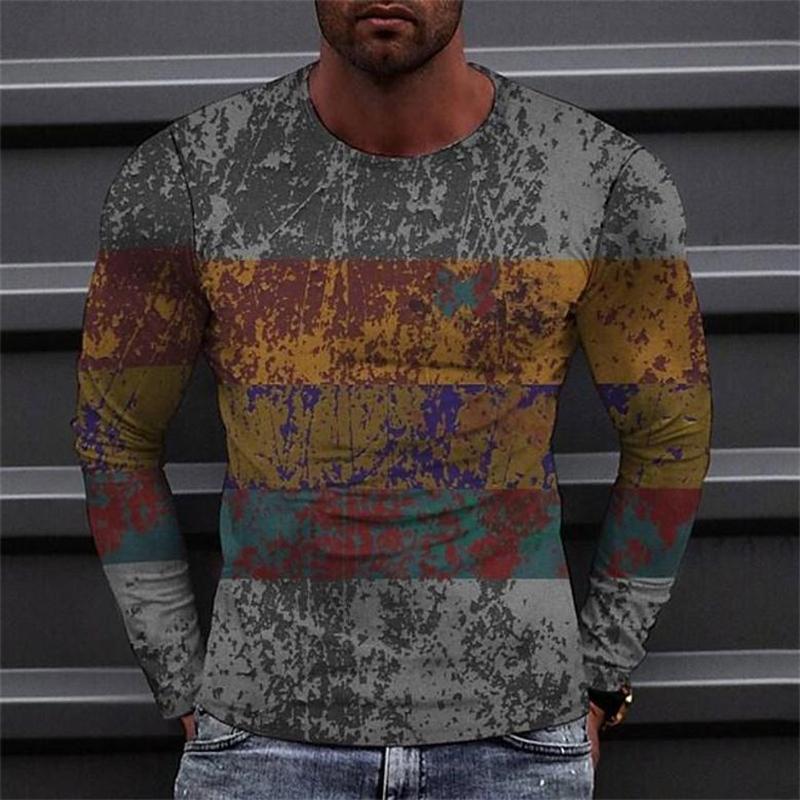 Men's 3D Creative Patterns Printed Hip Hop T-shirts Harajuku Style Round Neck Long Sleeve Colorful Comfortable Fashion Streetwear Top
