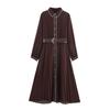 Kaslead New Women Clothes Western Style Fashion With Belt Pleat Midi Dress 4387225