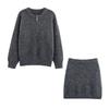Kaslead New Women Clothes Western Style Round Neck Half Zipper Pullover Knit Sweater Short Skirt Sets