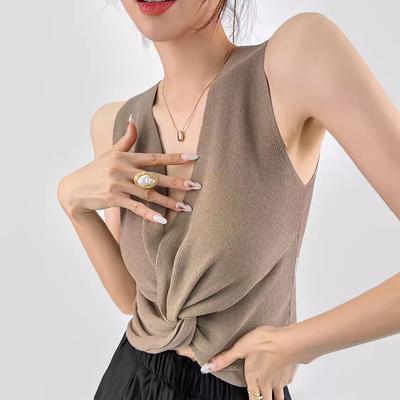 MD Summer Women's Clothing Minimalistic Temperamental Old Money Style Vacation Style V-neck Halter Sleeveless Short Shirt Tops 5124533