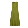 Summer Women's Clothing Decorated Row Button Slit Hemline At Hem Sleeveless Square Collar Linen Blend Midi Skirt Dress 6962029