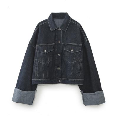 Vintage Dark Blue Denim Jacket Women's Spring and Fall Loose Casual Blouse Shirt