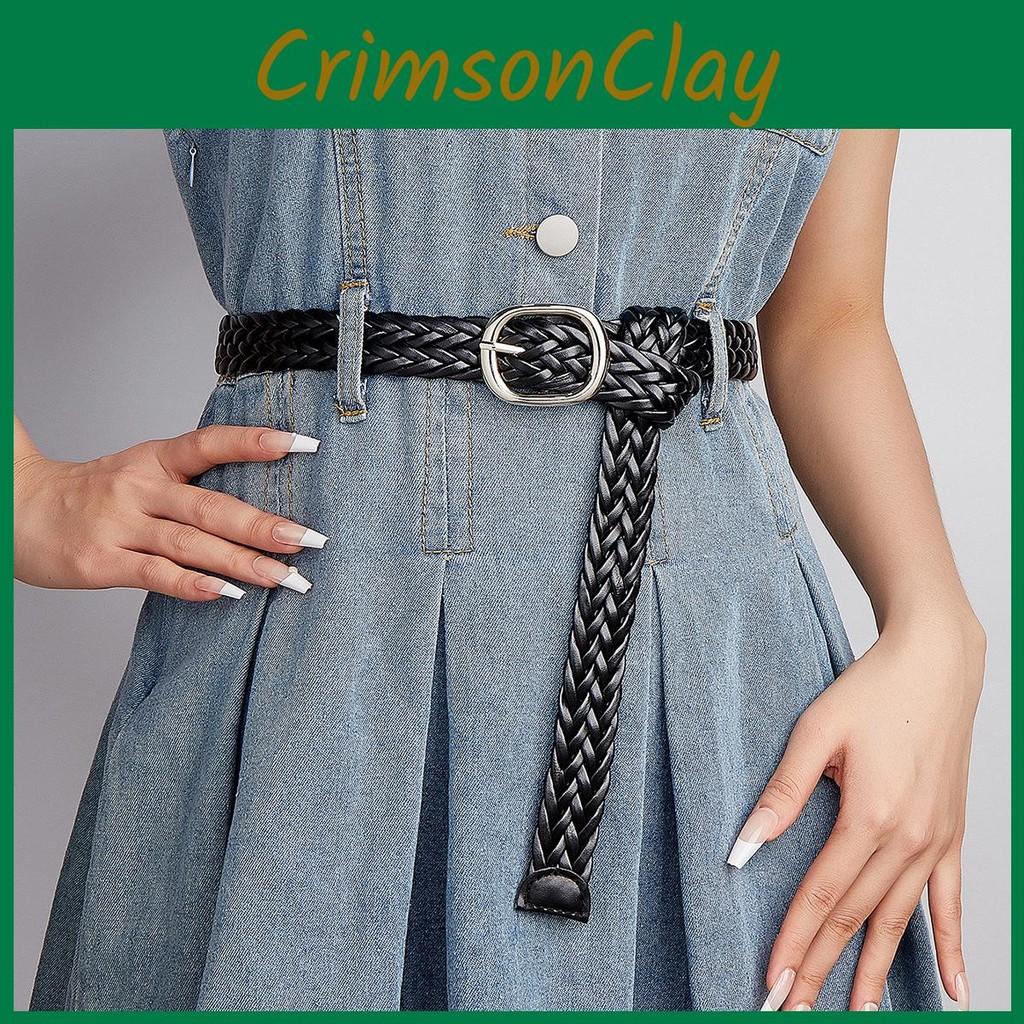 Black Pu Womens Woven Belt With Alloy Closure Design For Trendy Casual Outfits