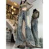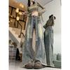 Small Retro American High Street Denim Female Stylish Loose Slim Looking High Waist Straight Wide Leg Mop Pants Summer