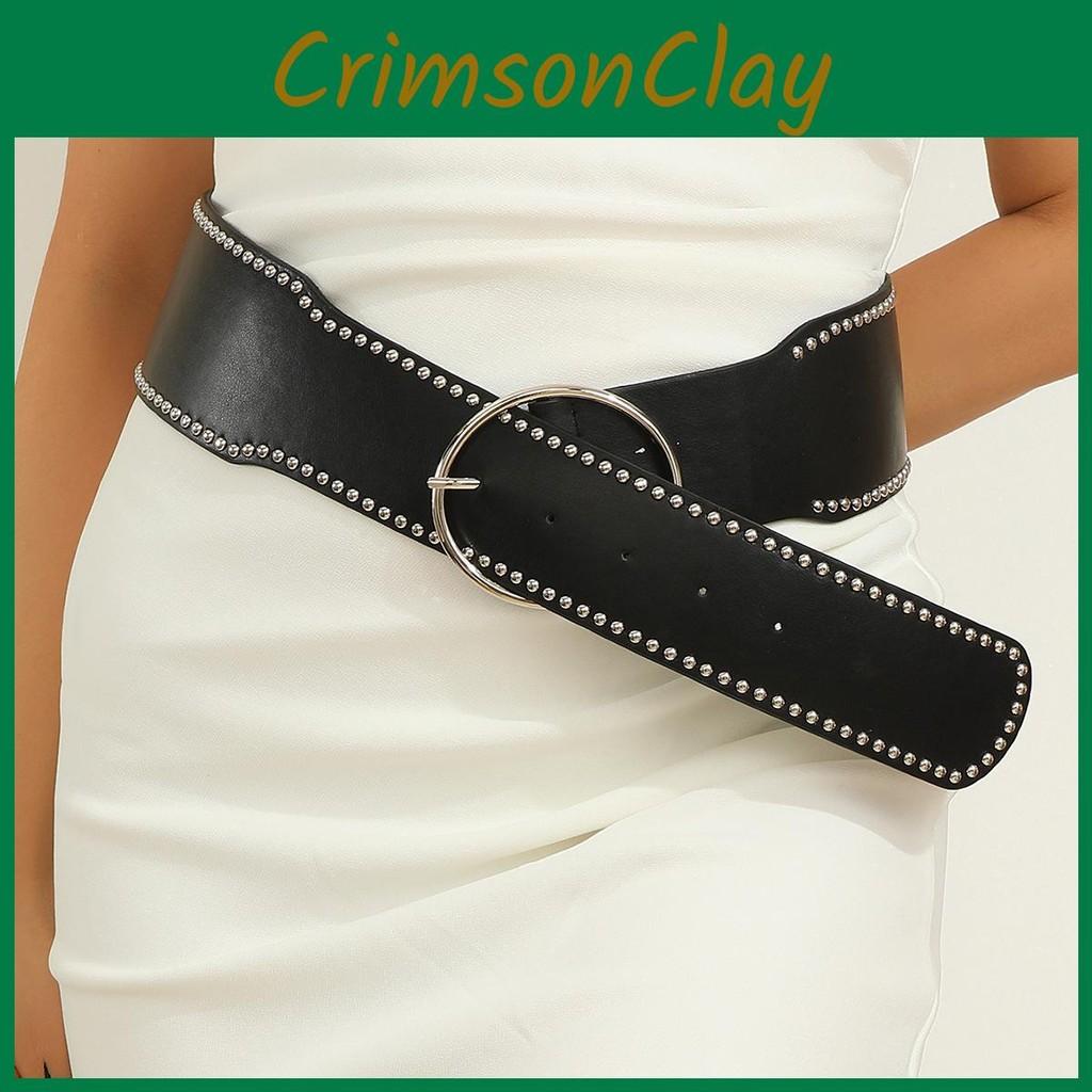 This edgy faux leather belt features rivet decor and a metal pin buckle, adding a bold touch to trendy outfits. Made of synthetic leather. The alloy buckle ensures durability and secure fitting. Ideal for casual or streetwear styles, it enhances modern fashion looks. Wipe clean with a damp cloth for maintenance.