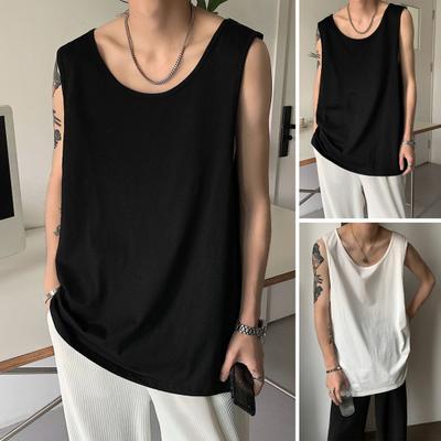 Loose Waistcoat Men's Vest Summer Fashion Brand White Round Neck Sleeveless T-shirt Versatile Sports Top Men