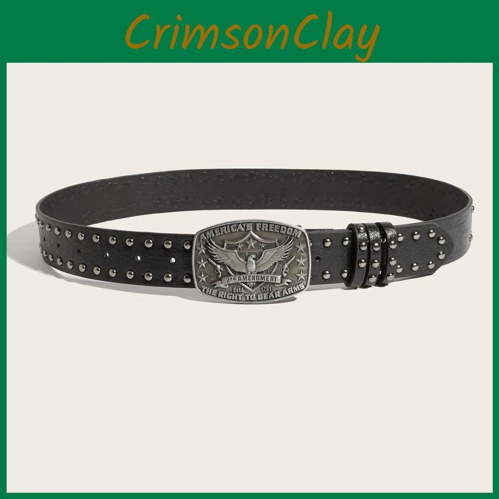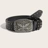 Decor Rivet Leather Punk Belt With Alloy Buckle And Eagle Pattern Casual For