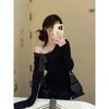 Of Design Leopard Print Shoelace Diagonal Shoulder Long Sleeves Knitwear Women's Clothing Early Autumn Sexy Sexy Slimming and Shoulder Hollow Tops