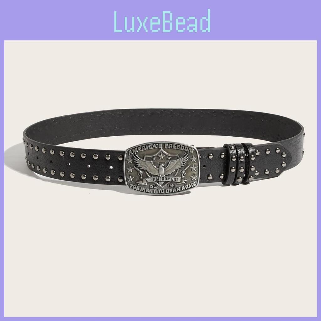 Rivet Decor Leather Punk Belt With Alloy Buckle And Eagle Pattern For Casual